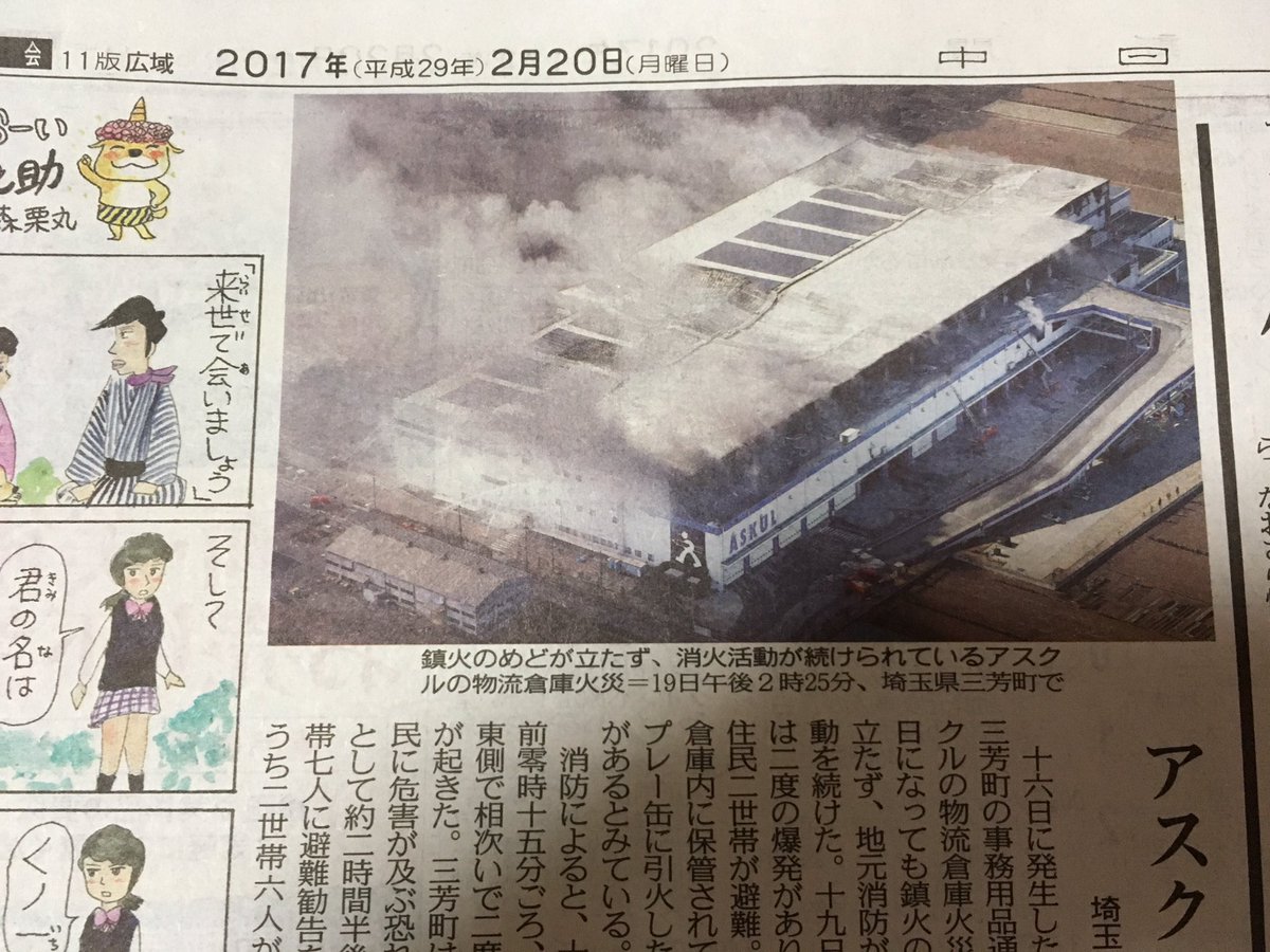 アスクルの倉庫火災、3日目に入っても鎮火のめど立たず https://t.co/mDbkP402Se